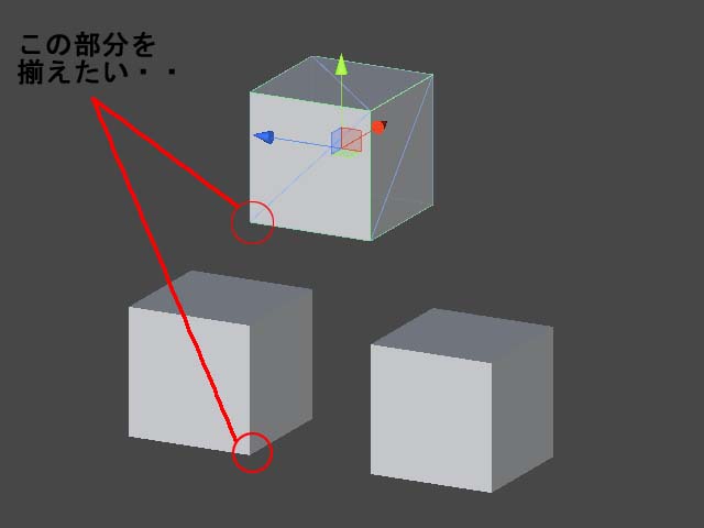 ①整列させたいオブジェクトを選び、[V]キーを押しっぱなしにする。