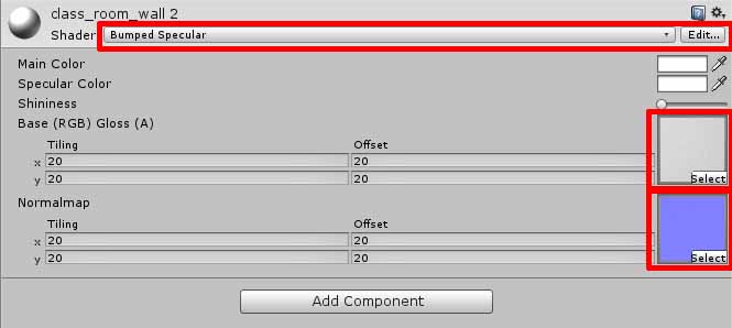 ・「Shader」を「BumpedSpecular」に設定する